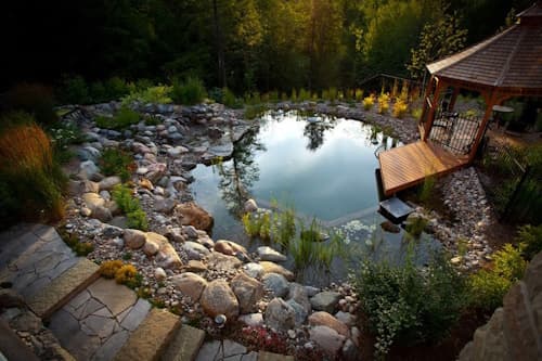 - Якщо глибина ставка, озера невелика, то берегоукріплення габіонами не передбачає облаштування опорної підошви. В результаті зменшується вартість робіт, конструкція швидше здається в експлуатацію.